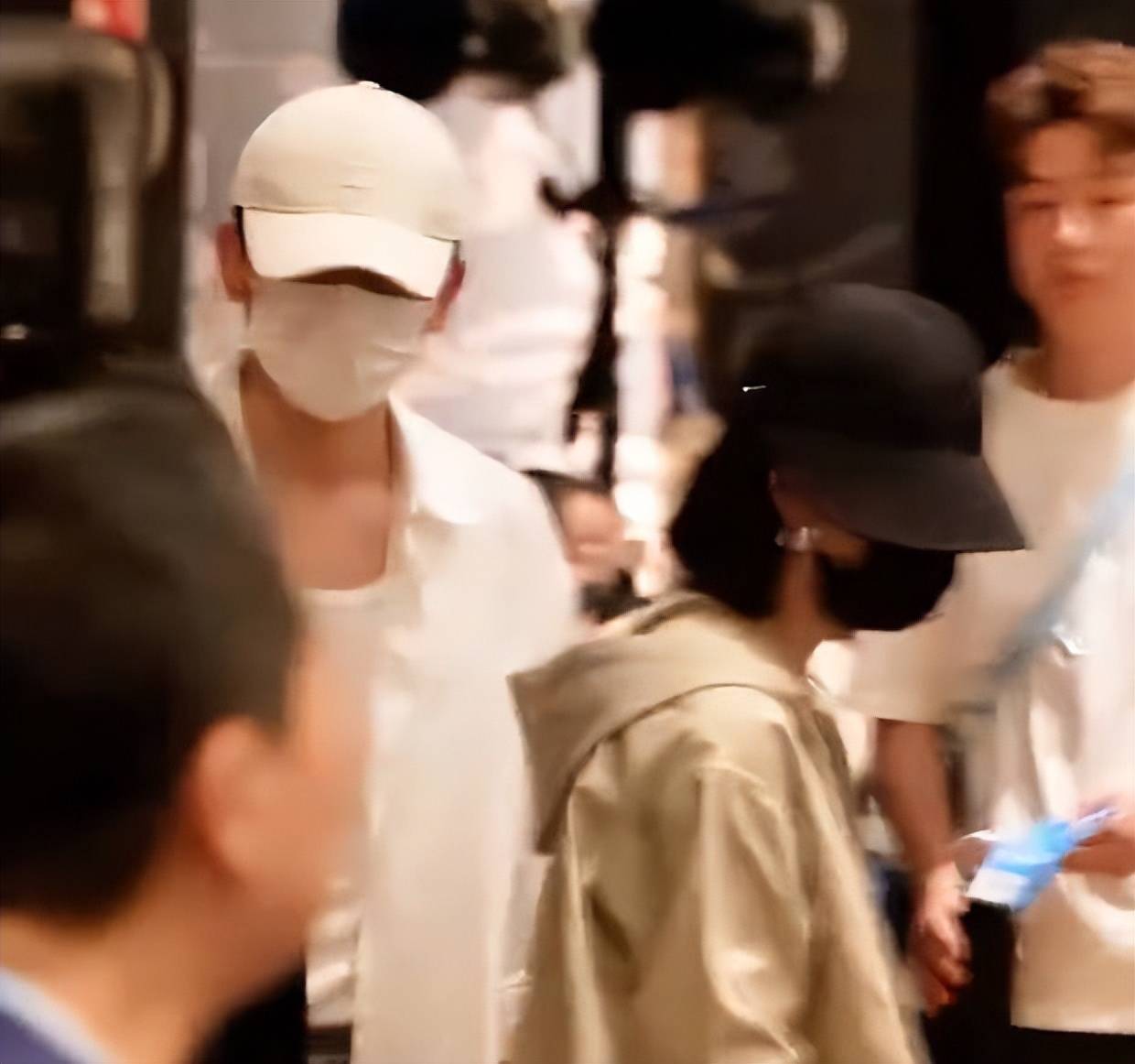 谢娜和张杰戴着帽子,打扮低调。