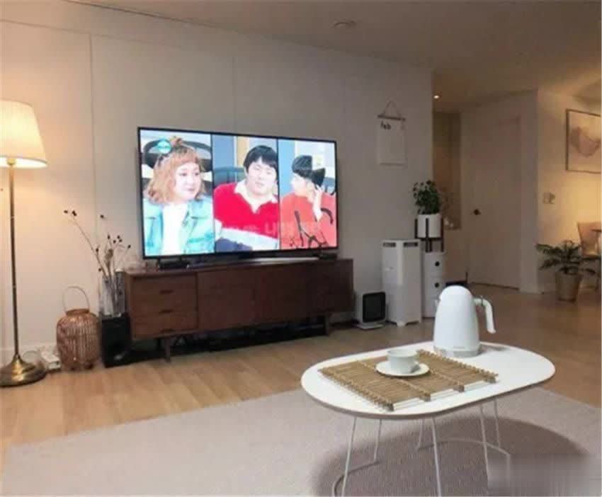 没有小桌的电视墙旁,保持了这种留白的设计,看上去清爽了许多。