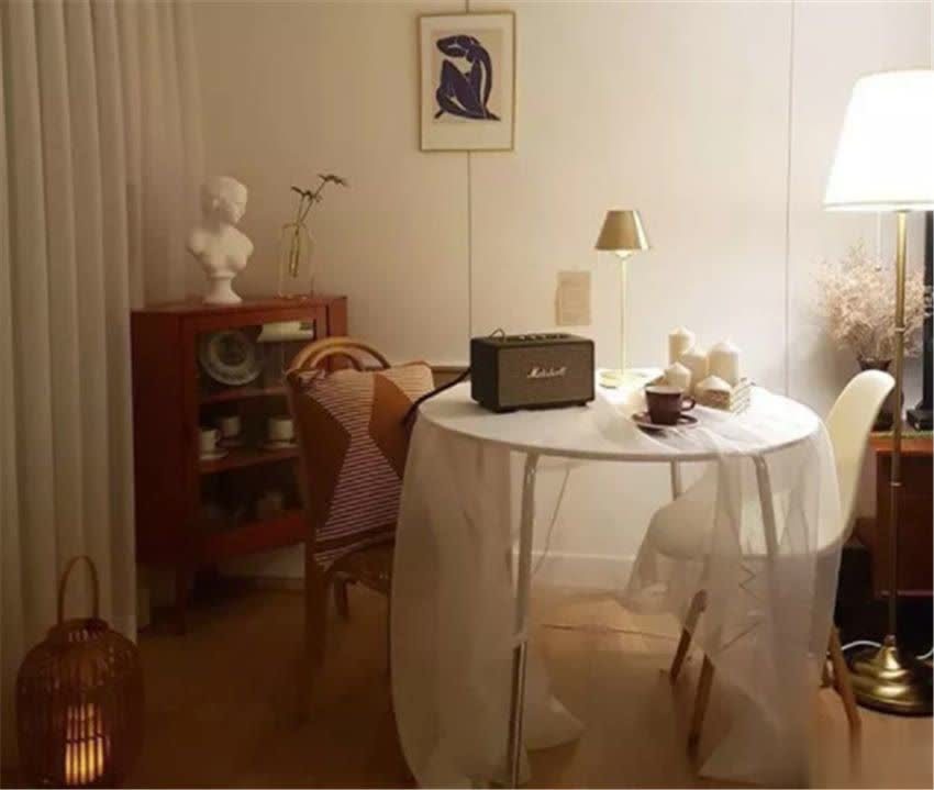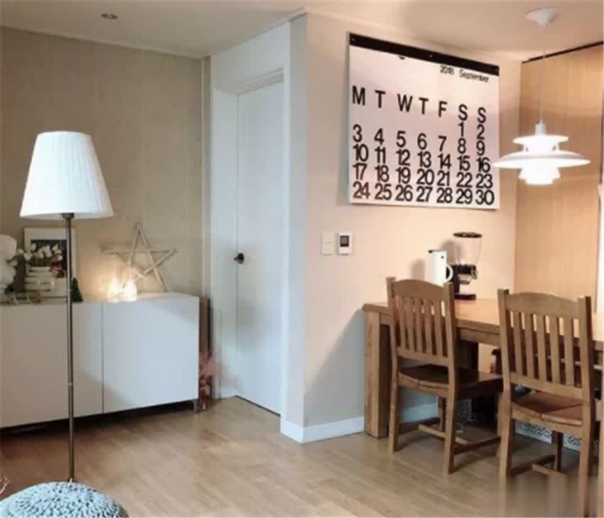 最早的时候,主妇太太晒出的餐厅是这样的,虽然也颇具温馨感,但木质的桌子难免显得有些老旧,于是在入住两年后的时间,夫妻二人决定来个小小的改变。