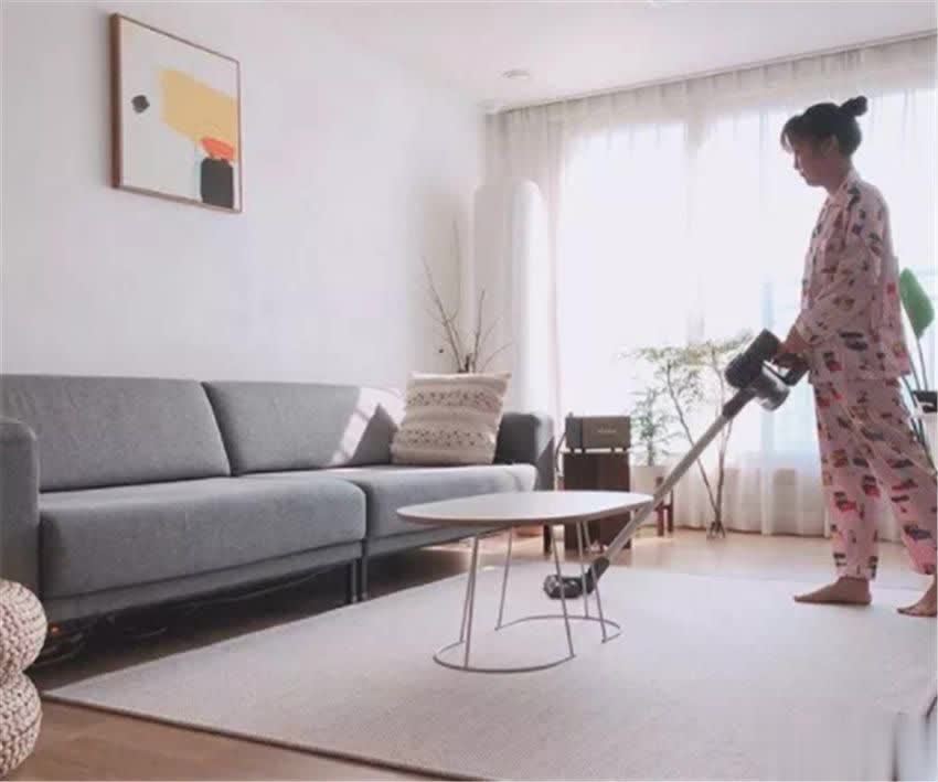 这位太太,平时会将家里打扫得干干净净,尤其是客厅,几乎每天都会用吸尘器进行清洁。
