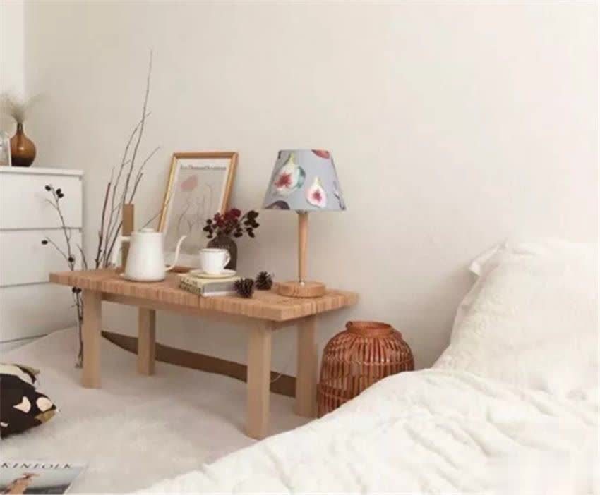 主卧中的小边几是不是有些眼熟?没错,客厅改变格局后,她将这个板凳状的小边几搬到了客厅,当作茶几使用。
