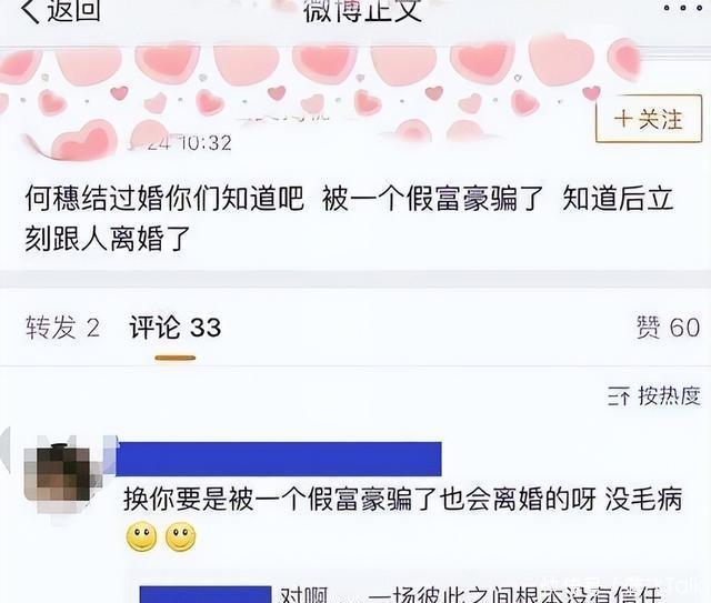 按理说谁遇到这样的事都会气到不行,婚礼里最怕欺骗了,这样没有信任的婚姻也没有继续的必要了,看来何穗是被骗了, 除了这件事,当初何穗上综艺,在综艺中的表现也败光好感,直到这个时候才发现原来有婚史只是冰山一角。